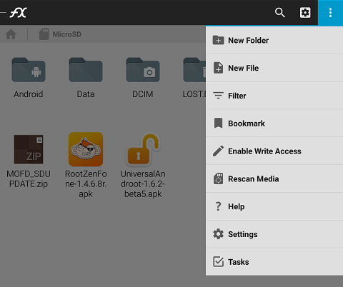 さてこのファイルマネージャですがAndroid 5に対応してSDカードへの書込みが可能なはずです。