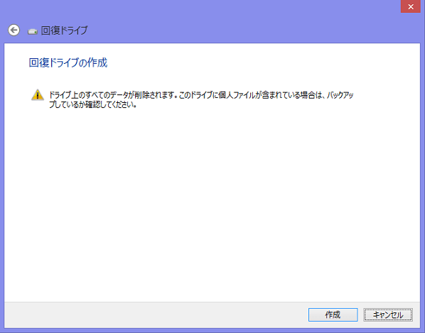 となるとリカバリCDも作成できないので回復ドライブを作成して、これで購入時のWindows 8をSSDに復元するかってことで作業を行いました。