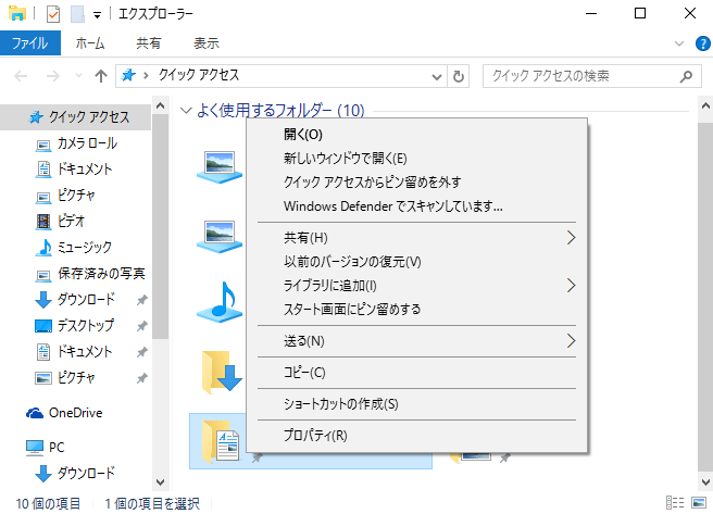 Explorerを開くとクイックアクセスにライブラリが表示されます。
