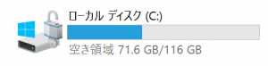 またアップデート後にはCドライブの空き容量が52GBになりました。