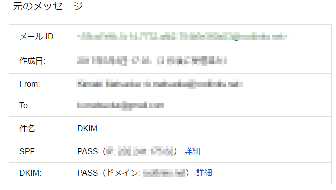 autorespond+dkim@dk.elandsys.comに空メールを送信すればDKIMの結果メールが送られてきます。”DKIM Signature validation: pass”があれば正常に署名されています。