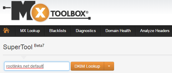公開鍵設定の確認は幾つかのサイトでできますが、今回はMXtoolboxで確認しました。
