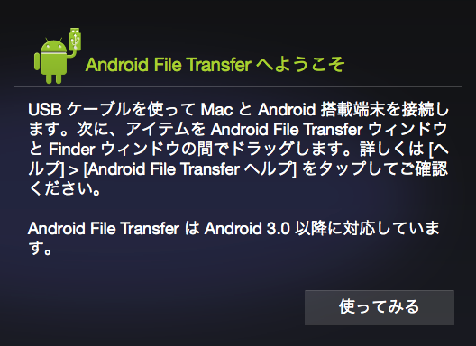 Android File Transferが必要とのことなので下記からダウンロードしました。