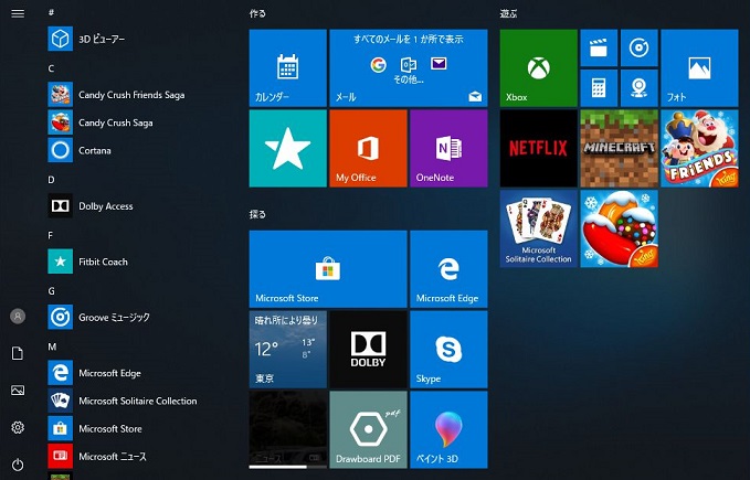 インストール後はプライバシーやセキュリティをことごとくOFFにして、いろいろ設定しましたが相変わらずスタートメニューにゲームがあります。
